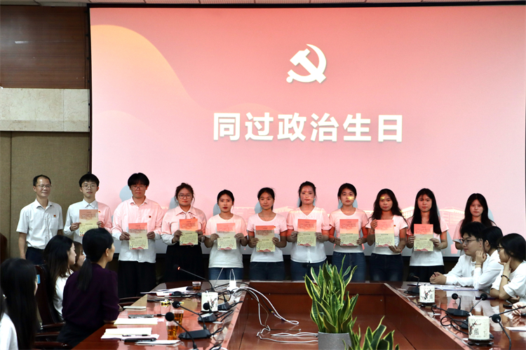 最后,戴文坤副书记为学生党员们颁发了政治生日卡,管理学系党总支书记苏秋红带领全体党员重温了入党誓词。